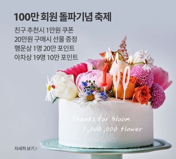 뿐만 아니라 행사 기간에는 100만 회원이 사랑한 베스트 상품 100개의 할인율을 역대 최대로 높여 판매해 소비자가 자주 구매하는 상품을 더 저렴한 가격에 제공한다. 이번 '100만 회원 돌파 기념 축제'는 진행 상황에 따라 조기 종료할 수 있다.