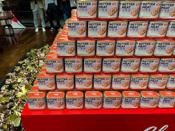 신세계푸드는 이날 이같은 대안육 비전을 담은 신제품 '베러미트 식물성 런천' 캔 햄을 처음 공개했다. 동물성 원료를 모두 뺀 자리를 대두단백, 식이섬유 등 100% 식물성 원료로 채웠다. 송 대표이사는 "캔 햄의 대표 회사인 미국의 호멜 식품사도 스타트업과 손잡고 대안육을 개발 중인 것으로 안다"면서 "식물성 스팸도 머지않아 만나볼 수 있을 것"이라고 말했다.