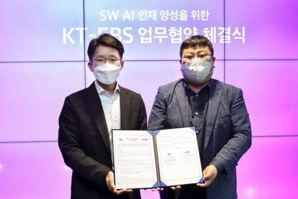 KT는 한국교육방송공사(EBS)와 '소프트웨어(SW)·인공지능(AI) 학습환경 제공을 위한 업무협약'을 체결했다고 5일 밝혔다.