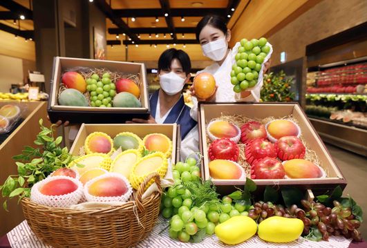 현대백화점도 올 추석 선물 센트로 애플망고, 샤인머스캣, 멜론 등 이색 과일을 대거 선보인다.