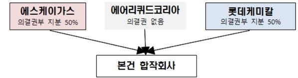 공정거래위원회는 롯데케미칼·SK가스·에어리퀴드코리아 3사간 합작회사를 설립하는 건을 19일 승인했다. 이들 3사의 지분구조는 SK가스(45%), 롯데케미칼(45%), 에어리퀴드코리아(10%)다.