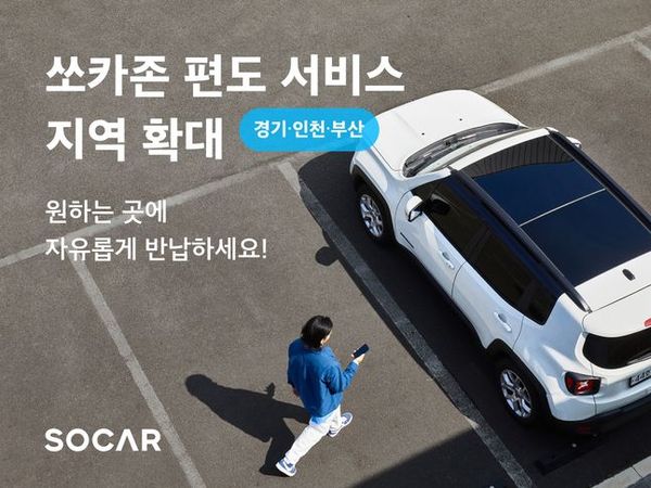 쏘카는 쏘카존에서 이동을 시작해 이용자가 원하는 도착지 인근 주차장에 차량을 반납할 수 있는 쏘카존 편도 베타 서비스를 서울에 이어 경기, 인천, 부산 지역으로 확대한다고 19일 밝혔다.