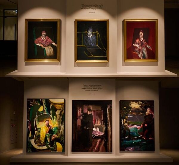 이번 전시에는 베이컨의 유명한 교황 시리즈 중 스페인 아티스트 디에고 벨라스케스(Diego Velázquez)의 교황 인노첸시오 10세의 초상(Portrait of Innocent X)을 음울하지만 매력적으로 재해석한 초상화를 위한 습작 II(Study for Portrait II), 교황을 위한 습작 I(Study for a Pope I)과 2차 세계대전의 폭력과 억압, 문화적 폭정을 그린 게니의 눈꺼풀이 없는 눈(Lidless Eye)과 컬렉터 3(The Collector 3)가 상대방을 마주하는 각도에서 전시돼 있다.