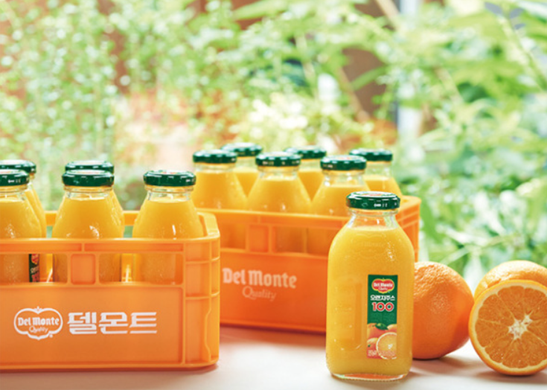 롯데칠성음료는 1980~1990년대 냉장고 한 켠을 지키며 물병으로도 활용됐던 '델몬트 오렌지주스 100' 2L 제품을 뉴트로 감성으로 재해석해 선보였다. 2L 제품은 250mL로 축소한 미니병 6개로 재탄생해 변온컵이 포함된 '델몬트 미니병 명절 기획팩'으로 출시됐다.