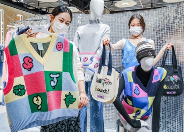 이번에 선보이는 'SJYP × BUWON' 캡슐 콜렉션은 SJYP의 대표 캐릭터인 '디노'를 부원의 스타일로 재해석해 디자인된 게 특징으로, 니트·스웻셔츠·액세서리 등 70여 종으로 구성됐다. 한섬의 패션 브랜드 전문몰인 'H패션몰'과 전국 SJYP 매장에서 판매한다. 사진은 13일 오전 경기도 성남시 현대백화점 판교점 4층 SJYP 매장에서 모델들이 캡슐 콜렉션을 소개하고 있는 모습.