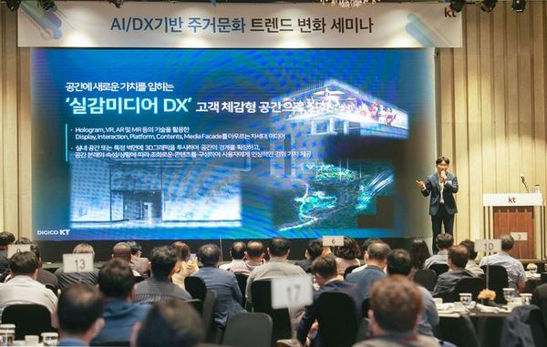 KT는 지난 15일 서울 서초구 양재동 엘타워에서 'AI·DX기반 주거문화 트렌드 변화 세미나'를 개최했다고 16일 밝혔다.