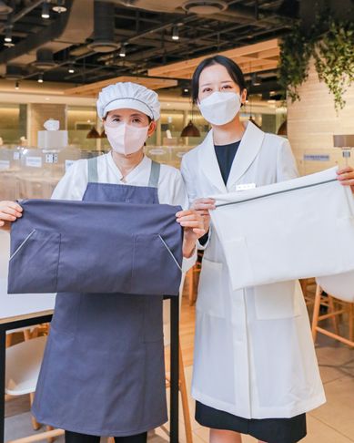 유니폼 생산 과정에서 남게 되는 자투리원단은 앞치마·에코백 등 '업사이클 굿즈'로 만들어 온라인몰인 그리팅몰 등에서 고객 사은품으로 증정할 계획이다.