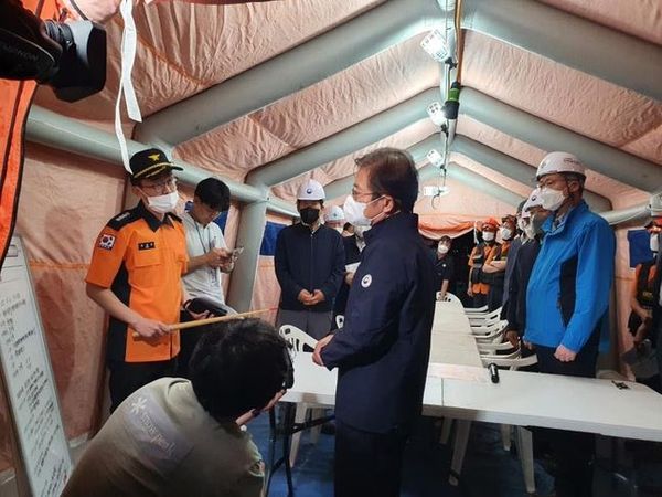 한편 현장을 찾은 이 장관은 숨지거나 다친 근로자에 대해 깊은 애도와 유감을 표한 뒤 신속한 원인 규명과 수습에 최선을 다해달라고 주문했다.