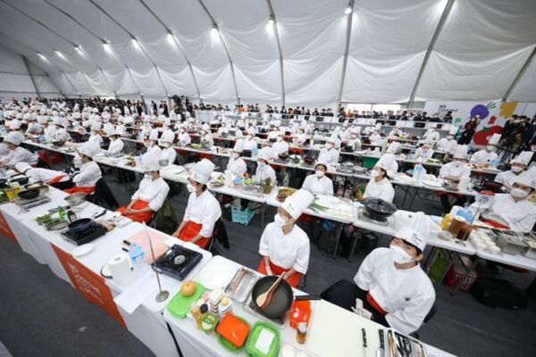 NS쿡페스트가 열리는 하림 퍼스트키친 옆 특설경연장에는 이날 이른 아침부터 본선에 진출한 100팀(일반팀 70팀·고등학생 20팀·미식 식당전 특별 10팀)이 하얀 셰프복을 입고 대회를 준비하고 있었다.