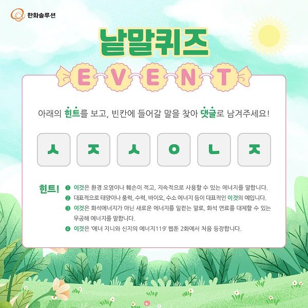 한화솔루션은 11월 1일부터 5일까지 친환경에너지 웹툰을 주제로 초성맞추기 퀴즈 이벤트를 열고 참가자들에게 커피박 화분 등 경품을 증정할 계획이다.