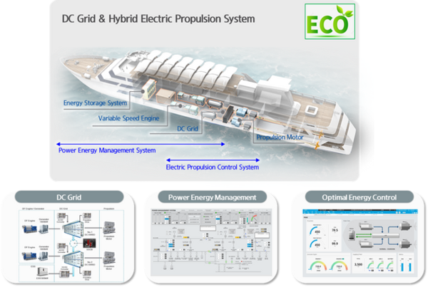 한국조선해양은 LNG추진선에 최적의 운항 효율을 제공하는 'AI 및 빅데이터 기반 연료공급 관리시스템'과 그룹 조선 3사의 기술력이 결합된 '차세대 선박 전기추진시스템'이 수상의 영예를 안았다.