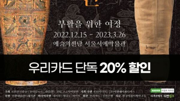 우리카드는 역대 최대 규모로 열리는 '이집트 미라전 : 부활을 위한 여정' 전시의 단독 할인 이벤트를 진행 중이다.