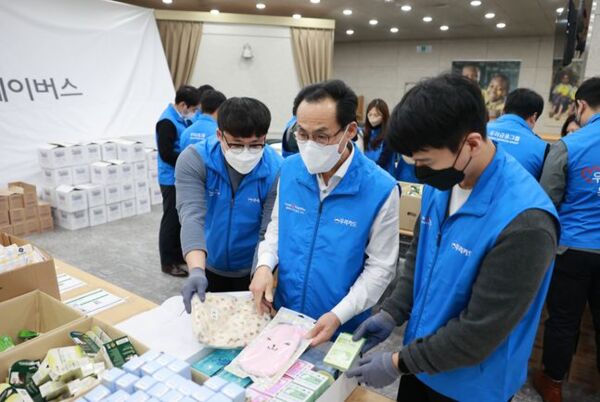 봉사활동은 이달 26일 영등포구에 위치한 굿네이버스 본부에서 진행됐다. 굿네이버스 김웅철 사무총장, 우리카드 김정기 사장 및 우리카드 임직원 30명이 참석해 생리대 키트를 직접 포장하고 기부금 1억5000만원을 전달했다.