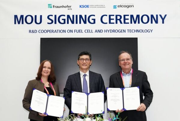 지난해 2월부터 프라운호퍼와 연료전지시스템의 기본설계를 진행 중인 한국조선해양은 프라운호퍼의 수전해 기술과 엘코젠의 연료전지 핵심부품 제조능력을 활용해 친환경 수소 생산기술도 확보할 예정이다.