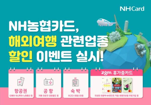 NH농협카드는 해외여행 수요 급증에 따라 항공·숙박·면세 등 해외여행 관련업종 할인 이벤트를 실시한다고 13일 밝혔다.