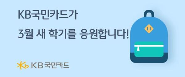 KB국민카드 관계자는 "3월을 맞아 학습지, 서점 업종 등 학생과 학부모를 위한 행사들로 준비했다"며 "기분 좋은 새 학기를 KB국민카드가 준비한 혜택으로 시작하시길 바란다"고 밝혔다.