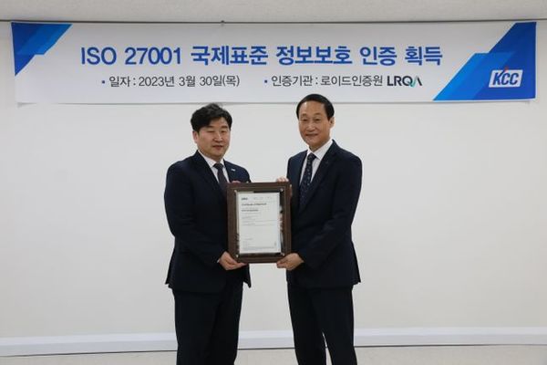 KCC 관계자는 "KCC는 국제표준인 ISO 27001 인증 획득하며 글로벌 최고 수준의 정보보호와 시스템 운영능력을 인정받았다"며 "앞으로도 정보보안 경영시스템을 지속적으로 개선·개발해 관리체계 수준을 향상시키고 고객 신뢰도 제고에 최선을 다하겠다"고 말했다.