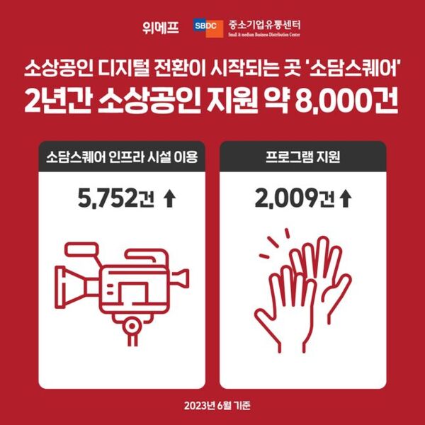 위메프는 13일 '위메프 소담스퀘어 역삼'에서 소상공인을 지원한 건수가 약 8000건에 달한다고 밝혔다. 위메프 소담스퀘어 역삼은 중소벤처기업부가 주관하고 중소기업유통센터가 위탁해 위메프에서 운영 중인 소상공인 종합 인프라 시설이다.