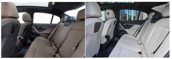 또한 BMW 관계자가 강조한 도어의 인터렉티브 바는 단조로운 실내에 다양한 색감을 불어넣음으로써 외관과 성능에서 뿐만 아니라 내부에서도 시각적인 역동성을 부여한다. 시트는 비건 소재인 베간자를 사용했는데 우리가 흔히 아는 가죽 소재의 질감과 크게 다르지 않고 꽤 안락했다. i5에는 시트 외에도 , 대시보드와 도어 패널, 스티어링 휠에 완전 비건 소재를 적용했다.