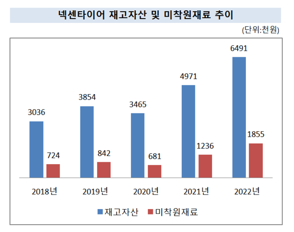 넥센타이어의 지난해 재고자산은 6491억원으로, 5년 전인 2018년 대비 거의 2배 가까이 증가했다. 코로나 이후 소비가 늘면서 재고자산이 빠르게 감소하는 통상의 기업들과는 크게 다른 모습이다.