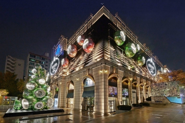 갤러리아백화점이 연말을 맞아 서울 명품관에서 크리스마스 트리를 비롯한 외관 장식을 17일부터 선보인다고 20일 밝혔다. 갤러리아의 올해 크리스마스 조형물은 이탈리아 럭셔리 브랜드 ‘프라다(PRADA)’와 함께 진행한다.