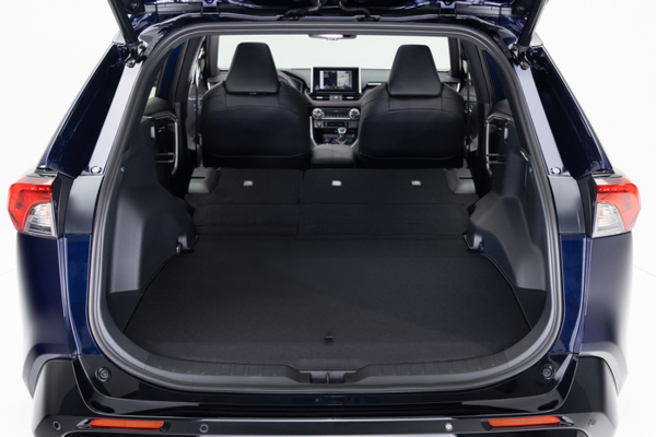 RAV4는 하이브리드 배터리 위치를 리어시트 하단으로 위치시키고, 구조 개선을 통하여 이전 4세대 대비 더욱 넓은 트렁크 공간을 확보하였다. 60L 캐리어 4개와 9.5인치 골프백이 여유 있게 들어가는 적재공간으로 아웃도어 활동 시 걱정 없이 짐을 실을 수 있다. 데크보드 아래는 토너 커버를 수납할 수 있으며, 2단계로 데크 보드 높이를 조절함으로써 다양한 수하물을 편리하게 적재할 수 있다.