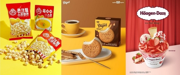 오뚜기는 옥수수스프와 콜라보레이션해, 고소한 옥수수 풍미를 갖춘 단짠단짠한 맛의 ‘콘크림스프 팝콘’을 출시했다. 신제품은 옥수수스프를 사용해 고소한 옥수수 풍미가 뛰어나며, 팝콘 특유의 바삭하고 적절한 소금으로 짭짤한 맛을 즐길 수 있다. 특히 오뚜기 스프를 연상시키는 레트로한 패키지를 그대로 적용해 눈길을 끈다.
