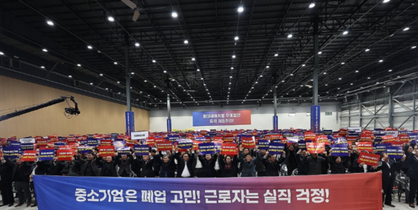 김기문 중소기업중앙회 회장도 이날 “이미 현행 산업안전보건법에 중대 사고와 관련한 처벌 내용이 모두 들어가 있는데도 중소기업계의 의견은 무시한 채 중처법을 시행하는 것이 이해되지 않는다”며 “정치가 경제의 발목을 잡지 않도록 중처법 유예 법안을 29일 국회 본회의에서 반드시 통과시켜 달라”고 목소리를 높였다.