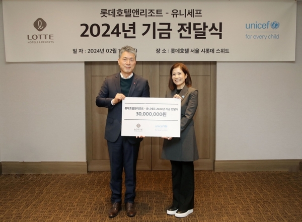 롯데호텔앤리조트는 기부금 3000만원을 유니세프 한국위원회(이하 유니세프)에 전달했다고 20일 밝혔다.