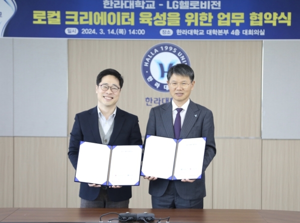 LG헬로비전과 한라대학교는 로컬 콘텐츠 크리에이터 양성을 위한 업무협약을 체결했다고 15일 밝혔다. 지역 대학생들이 직접 로컬 콘텐츠를 기획하고 제작할 수 있도록 지원해 지역 관광 및 경제 활성화를 이끌겠다는 목표다.