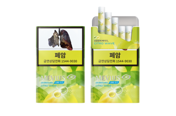‘메비우스 LBS 시트로 웨이브 3mg’의 타르와 니코틴 함량은 각각 3.0mg, 0.20mg이다. 29일부터 전국 편의점과 담배 소매점에서 4500원에 판매된다.