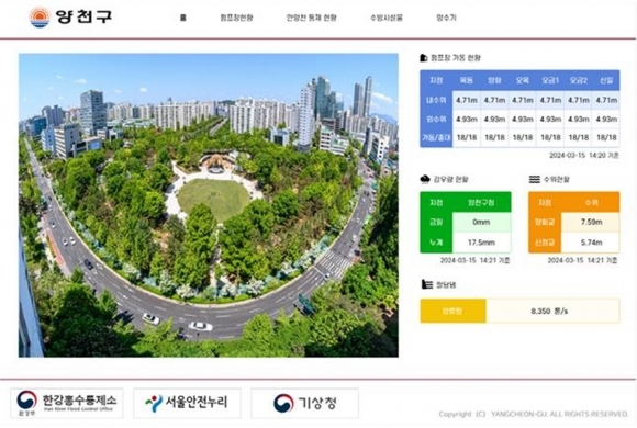 또 안양천 진출입 원격 차단기 가동 현황 등이 실시간으로 자동 표출되는 ‘안양천 통제 현황 알림 시스템을 구축해 구민들이 안양천 소교량 3곳(신정잠수교, 희망교, 목동토출관로) 및 안양천 둔치 진입 통제 현황 등을 언제든 확인할 수 있도록 했다. 실시간 수방 정보 공유시스템은 새로운 웹 주소 또는 구 홈페이지 메인 배너를 통해 이용할 수 있다.