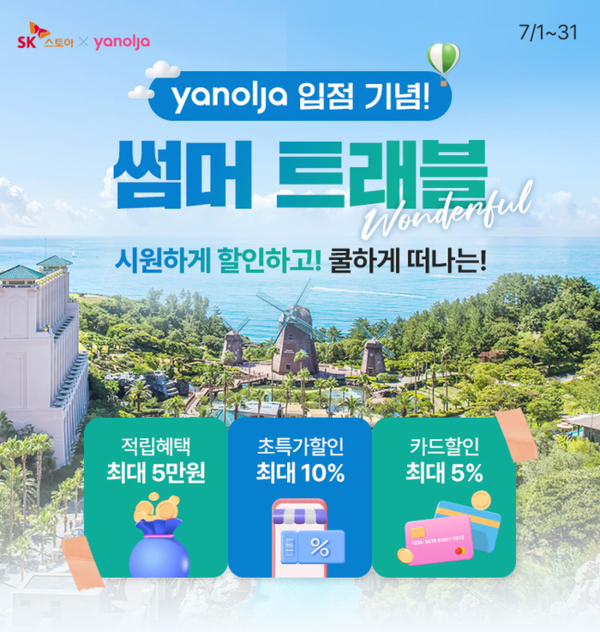 SK스토아는 여름 휴가철을 앞두고 국내 여행을 계획하는 소비자를 공략하기 위해 지난 25일 야놀자 입점을 완료했다.