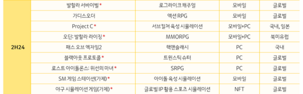 상반기 신작 1종 출시에 그쳤던 카카오게임즈는 하반기에 △스톰게이트 △발할라 서바이벌 △가디스 오더 △프로젝트 C(가칭) △패스 오브 엑자일2 △블랙아웃 프로토콜 △로스트 아이돌론스 : 위선의 마녀 △SM 게임스테이션(가칭) △야구 시뮬레이션 게임(가칭) 등 9종의 신작 출시를 계획하고 있다.