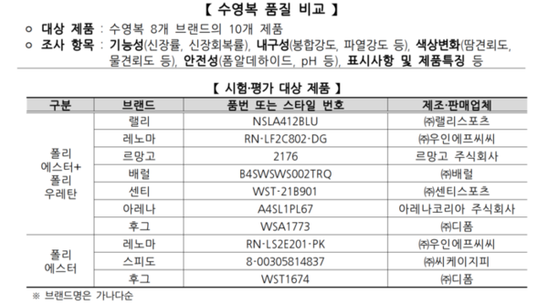 한국소비자원은 여성용 수영복 브랜드 10개 제품에 대해 기능성·내구성 등 품질 및 안전성을 시험한 결과를 9일 발표했다.