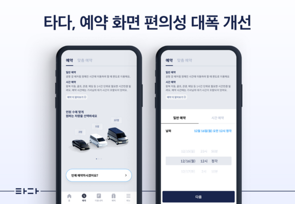 모빌리티 플랫폼 ‘타다’ 운영사 브이씨엔씨는 앱 내 ‘예약’ 탭 화면을 개편한다고 10일 밝혔다.