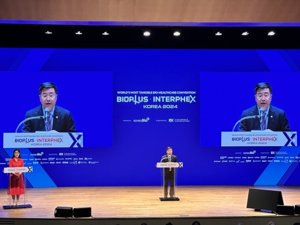 이날 개막식에서 축사에 나선 강경성 산업통상자원부 1차관은 “바이오산업은 연간 약 10% 성장될 것으로 예상되는 미래 신성장 동력으로, 대한민국에서도 첨단 산업으로 인정하고 온 힘을 기울여 육성을 하고 있다”며 “지난달에는 바이오 첨단산업 특화단지 5곳을 지정을 했고, 또한 기업들이 특화단지에 투입할 36조원 규모의 민간 투자가 차질 없이 이행될 수 있도록 밀착 지원하겠다”고 강조했다.