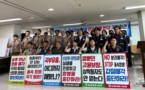 아시아나조종사노동조합과 아시아나항공노동조합은 11일 기자회견을 열었다. 노조는 대한항공과 합병과정에서 운수권 과다 반납으로 손실이 예상되며, 항공산업 독과점, 일자리 감소 등 국부유출과 국민의 피해로 이어지는 인수합병을 반대한다고 밝혔다.