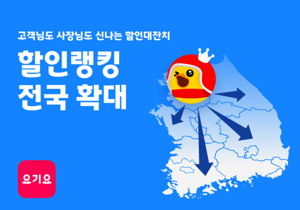 요기요가 인기 배달 메뉴를 최고의 할인 가격으로 즐길 수 있는 ‘할인랭킹’ 서비스가 전국으로 확대되었다고 12일 밝혔다.