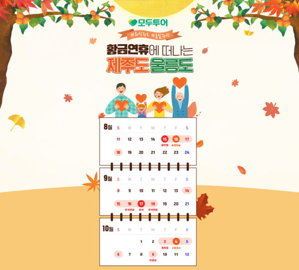 이에 모두투어는 하반기 황금연휴 기간에 출발하는 제주도와 울릉도 상품 기획전을 출시했다.