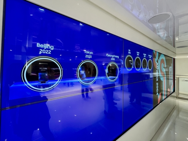입구를 통해 작은 계단을 따라 반층 정도 올라가면 오른편에 가장 먼저 눈에 들어오는 곳은 삼성전자의 ‘올림픽 에디션’ 시리즈다. 그간 삼성이 출시한 올림픽 에디션이 시대순으로 전시돼, 변천사를 한눈에 확인할 수 있다.