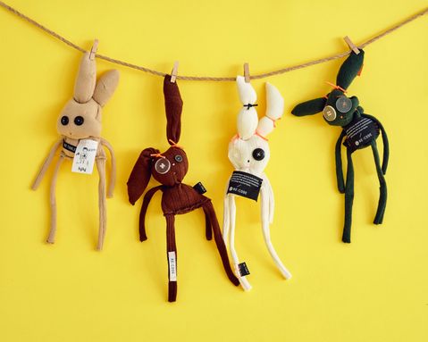 래코드와 정희기 작가는 재고 양말을 업사이클링해 만든 인형 작품 ‘래;토’를 선보이며, 직접 만들 수 있는 ‘래;토 DIY KIT’ 4종을 출시했다. 래;토는 달에 살다가 지구별로 이사 온 가족과 친구들을 찾으러 온 둥근 귀와 단추로 만든 눈이 특징인 토끼 캐릭터다.