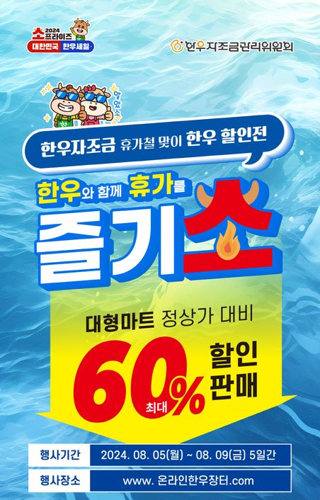 한우자조금관리위원회가 여름 휴가철을 맞이해 8월5일부터 9일까지 5일간 온라인 한우장터를 개최하여 다양한 한우 상품을 할인판매 한다고 5일 밝혔다.