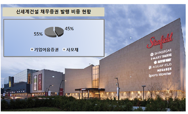 신세계건설 사모채 발행은 올 들어 세번째다. 지난 1월 1000억원을 발행한 데 이어 4월에도 500억원을 찍은 바 있다. 이번 발행은 지난 1월 1000억원 규모의 사모채를 발행하는 과정에서 투자자와 올해 총 2000억원의 사모채를 3번에 걸쳐 발행키로 한 약정의 일환이다.