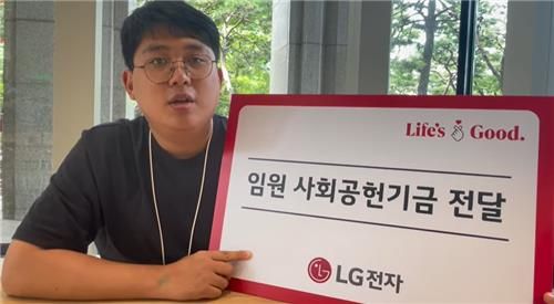 13일 전자업계에 따르면 유튜브 채널 'MZ전자'를 운영하는 최정현 LG전자 선임은 지난 7일 기부 키오스크로 월급 300만원을 기부하는 영상을 게재했다.