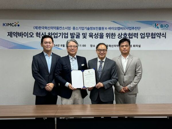 재단법인 한국혁신의약품컨소시엄(KIMCo재단)은 중소기업기술정보진흥원 K-바이오랩허브사업추진단과 제약바이오 혁신 창업기업 발굴 및 육성을 위한 상호협력 업무협약(MOU)을 체결했다고 20일 밝혔다.