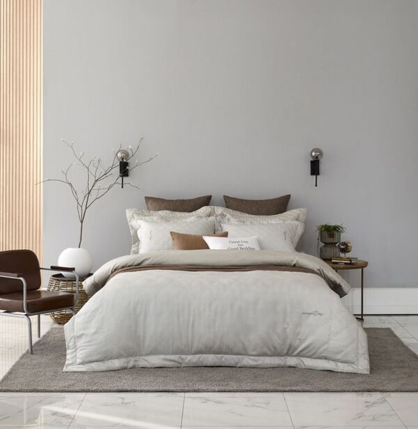 플로애는 너도밤나무에서 추출한 모달과 면을 혼방한 소재로 만들어 오랫동안 부드러운 감촉과 선명한 색을 유지한다. 오렌지색 백합과 초록색 잎사귀를 수채화 기법으로 그린 듯이 표현한 패턴으로 화사함은 물론 우아한 침실 분위기를 연출한다.
