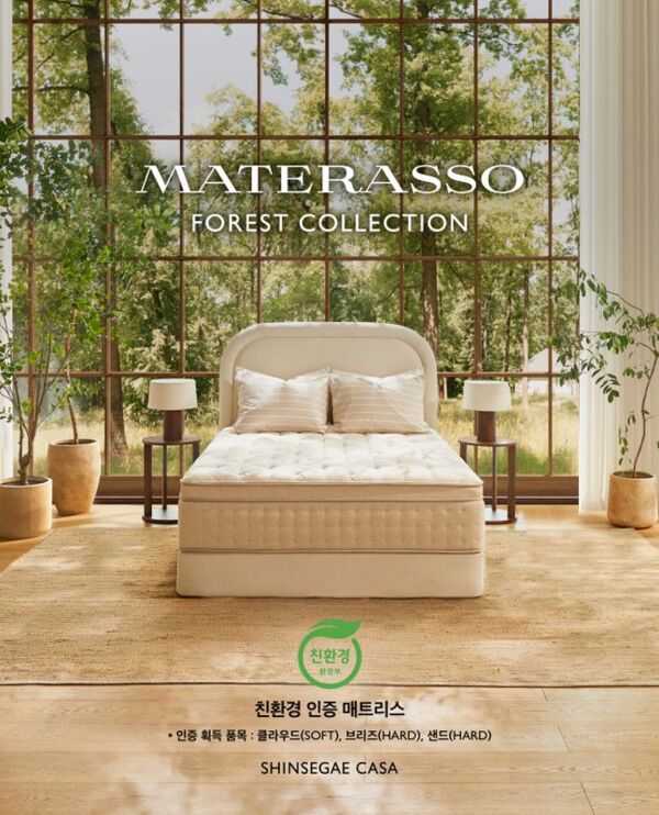 신세계까사(SHINSEGAE CASA)는 수면 전문 브랜드 '마테라소(MATERASSO)'의 '마테라소 포레스트 컬렉션' 매트리스가 환경표지인증을 취득했다고 밝혔다.