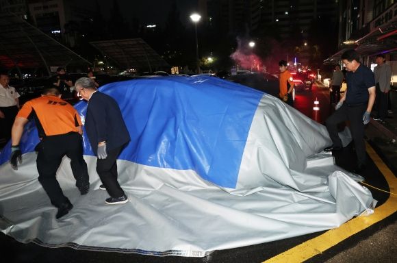 이어 지상주차장에서 질식소화포 사용법을 시연했다. 오 구청장은 "전기차 화재 예방은 구민들의 안전과 직결되는 중요한 문제"라며 "주민들의 이해를 도와 불안을 덜고 전기차 화재를 예방하기 위한 실질적인 대책을 마련해 나가겠다"고 말했다.