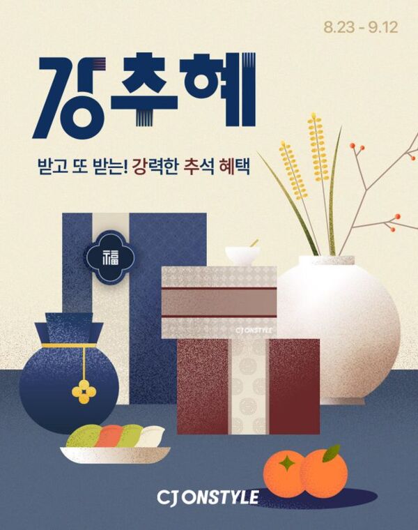 CJ온스타일은 오는 12일까지 모바일과 TV라이브를 통해 ‘강력한 추석 혜택(강·추·혜)’ 프로모션을 펼친다고 2일 밝혔다.
